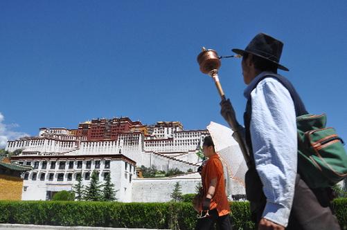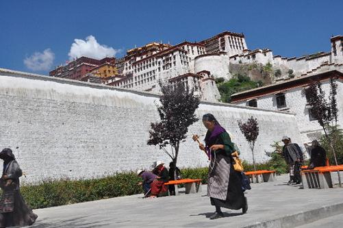 信教群眾在布達(dá)拉宮西南面的轉(zhuǎn)經(jīng)道上轉(zhuǎn)經(jīng)